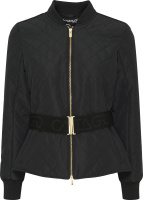 Catago klassiek en elegant jasje in gewatteerde look. Geribde kraag en manchetten met super chique gouden details, waaronder een riem die de taille accentueert. Voor een elegante look te paard, op stal of zelfs in de winkel. Jasje valt getailleerd.