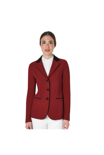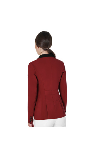 Elegance wedstrijdjasje voor dames met drie knopen en patch met Equestro-logo op de schouder. De ademende technische stof zorgt voor een perfecte pasvorm.