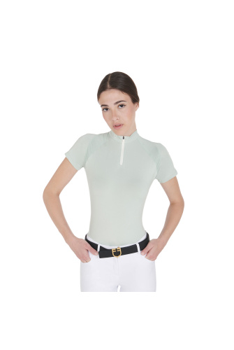 Een sportief poloshirt van technisch materiaal met mesh inzetstukken voorop de schouders, een klein geprint merklogo op de borst, een chique print met mesh materiaal op de borst en een kleine print achterop de hals. Met fijn ribmateriaal op de manchetten en de halskraag.