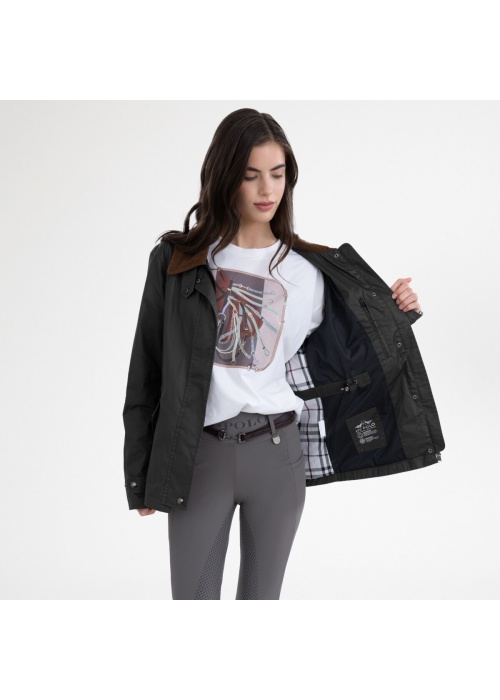 Ben je klaar om je te hullen in tijdloze elegantie, zowel op stal als daarbuiten? De HVPMorgane waxjas van HV Polo brengt de klassieke ‘barn jacket’ naar een nieuw niveau van stijl en functionaliteit. Deze jas is perfect voor de modebewuste ruiter die geen compromissen sluit op het gebied van comfort en klasse. Met zijn relaxte, modieuze pasvorm en winddichte eigenschappen blijf je heerlijk warm en beschermd, wat het weer ook doet. Of je nu je paard verzorgt, een wandeling maakt of geniet van een polo-evenement, met deze jas straal je altijd een ontspannen luxe uit. De details, zoals de opvallende corduroy kraag en de zorgvuldige branding, maken deze jas een echte blikvanger die je keer op keer wilt dragen.